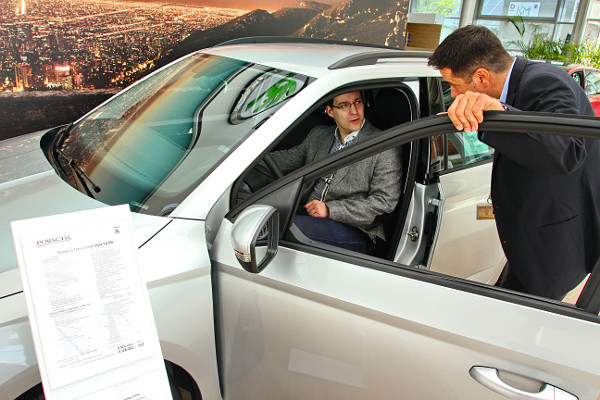 Az üléspróbához nem kell, hogy mozogjon az autó, az első benyomásokat érdemes a szalonban megszerezni. Fotó: Dombóvári Mihály Egy Škoda-szalonba mentünk el tesztvezetésre, tele kíváncsisággal, hogy a profi értékesítő mit javasol, miképp építse fel a reménybeli vásárló az új autó választását. Gyorsan kiderült, hogy nem mindenki igényli a tesztvezetést: van, aki tart tőle, mert baja lesz az autónak és ki kell fizetnie a kárt (a felelősség a vezetőé), más pedig már ismeri a típust, a rokonságnál, barátok közt, vagy épp a munkahelyén vezette, kipróbálta. Pedig a szakember mindenképp javasolja a futáspróbát, hiszen egy nagy értékű tárgyról van szó. A vásárlói aktivitás nehezen kiszámítható, van, hogy senki sem „tesztvezet” egy nap, de van, hogy 3-4 kört is futnak. Amikor új modellt mutat be a márka, mindig felszaporodik a tesztvezetések igénylése.
