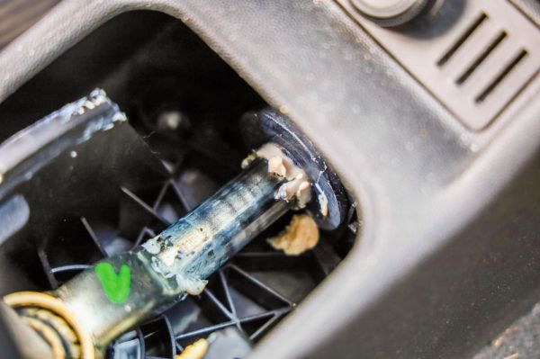 A váltókulissza felől indult meg a feltárás, és nem volt nehéz megállapítani, hogy azon belül kotyog a rudazat. A Corsa C váltókarjától fém és műanyag karokon át jut tovább a kapcsolás, az elemek gömbfejekben végződnek, azok anyaga a rúd anyagával megegyezik. A gömbfejeket fogadó fészkek minden esetben műanyagból készültek. Ugyan a kocsi futásteljesítménye alacsony (35 ezer km), azonban már 20 éves, a kenőanyag az érintkező felületek közül javarészt eltűnt, ráadásul az öregedő műanyagok rideggé váltak. A kopás és az alakváltozás egyaránt szerepet játszott abban, hogy jó 5-7 mm-es lógás alakuljon ki, így a váltókart hiába billentette maga felé a vezető, hogy az egyes-, vagy a kettes fokozatot kapcsolja, az ez irányú mozgatást továbbító gömbfejfészkek kitágulása miatt a rudazat már nem tudta a kapcsolási síkba hozni a mechanikát (bár a kar látszólag a megfelelő síkban volt).
