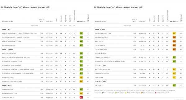 Az őszi gyermekülés-tesztjükben összesen 26 ülést vizsgálat az ADAC és az ÖAMTC szakemberei, és ezeknek több mint a fele jó eredménnyel zárt, csak 5 ülés lett kifogásolható és csak 1 bukott meg. Utóbbi az Osann Oreo 360 II elnevezésű ülés, amelynek károsanyag-vizsgálata során a határértéknél magasabb szintű DPHP nevű lágyítót mutatták ki – a gyermekülésekre nincsenek törvényi előírások, ezért a gyermekjátékokra vonatkozó előírásokat kérik számon ezen a téren a tesztelők.