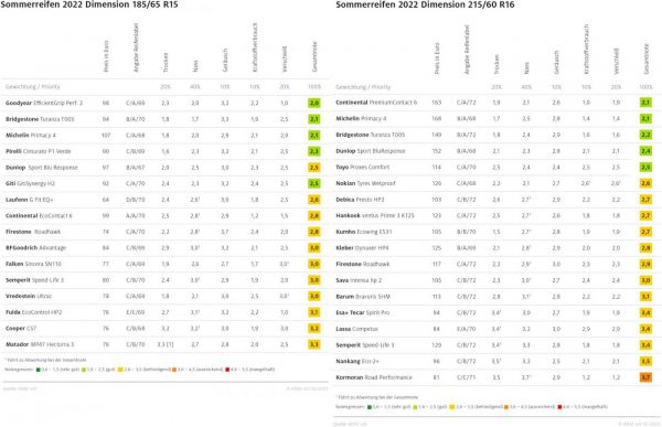 A német ADAC, az osztrák ÖAMTC autósklubok és társszervezeteik a 2022-es nyári abroncs tesztjükben a kisautók (185/65 R15) és a kompakt szabadidő-autók (215/60 R16) gumijait tesztelték, az összesen 34 garnitúrából 11 végzett „jó” eredménnyel, 22 lett „kielégítő” és a leggyengébb garnitúra is „elégséges” minősítéssel zárt – a lengyel Kormoran SUV-abroncsáról van szó.