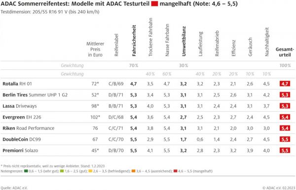 Ezzel ellentétben még a kedvező ár mellett se ajánlják a következő 7 abroncsot, mert azok olyan veszélyes menettulajdonságokat biztosítanak: Rotalla RH 01, Berlin Tires Summer UHP 1 G2, Lassa Driveways, Evergreen EH 226, Riken Road Performance, Double Coin DC99, Premiorri Solazo.