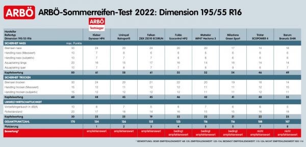 Jelentősen, akár több mint 50%-kal drágultak a gumiabroncsok, ezért különösen a kis méretű autók tulajdonosai hajlandóak kitérni az olcsóbb abroncsok felé. Az osztrák ARBÖ autós klub a tagszervezeteivel (GTÜ és AutoClubEuropa) ezért az idei nyáriabroncs-tesztjében a 195/55 R16-os méretosztályban kifejezetten az olcsó abroncsokat válogatta össze. A piacnak e szegmensében már nem olyan rózsásak a kilátások, mint a „márkás” abroncsoknál, a tesztelt 8 abroncs közül 3-at tudnak ajánlani, 2 megvásárlását nem ajánlják.