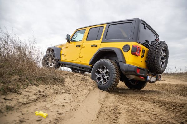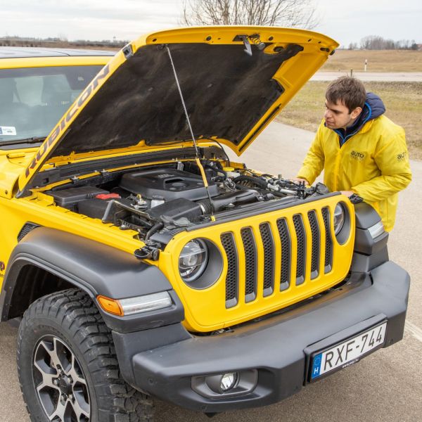 A Fiattal közös műszaki alapokra épülő, Olaszországban gyártott Renegade-del ellentétben a Wranglert a michigani Auburn Hillsben fejlesztették, és az ohiói Toledóban gyártják, erről árulkodik a csomagtérajtó matricája. Tény, hogy a jogtulajdonos szívből igyekszik fenntartani a Jeep kultuszát, ami az autóban található tucatnyi szellemes részleten is tetten érhető, de mindez mit sem érne egy hiteles autó nélkül. Az új generáció már első látásra szimpatikussá válik, hiszen úgy őrizte meg a jól ismert, már régóta klasszikusnak számító karakterét, hogy közben minden téren sikerült modernizálni. A 190 000 Ft-os felárért kínált Hellayella sárga pasztellszínben kifejezetten jól mutat a rövid és platós (Gladiator) karosszériával is választható széria. Bár vannak konzervatív árnyalatok az árlistában, egy ilyen látványos autót érdemes a feltűnő színek egyikében választani.