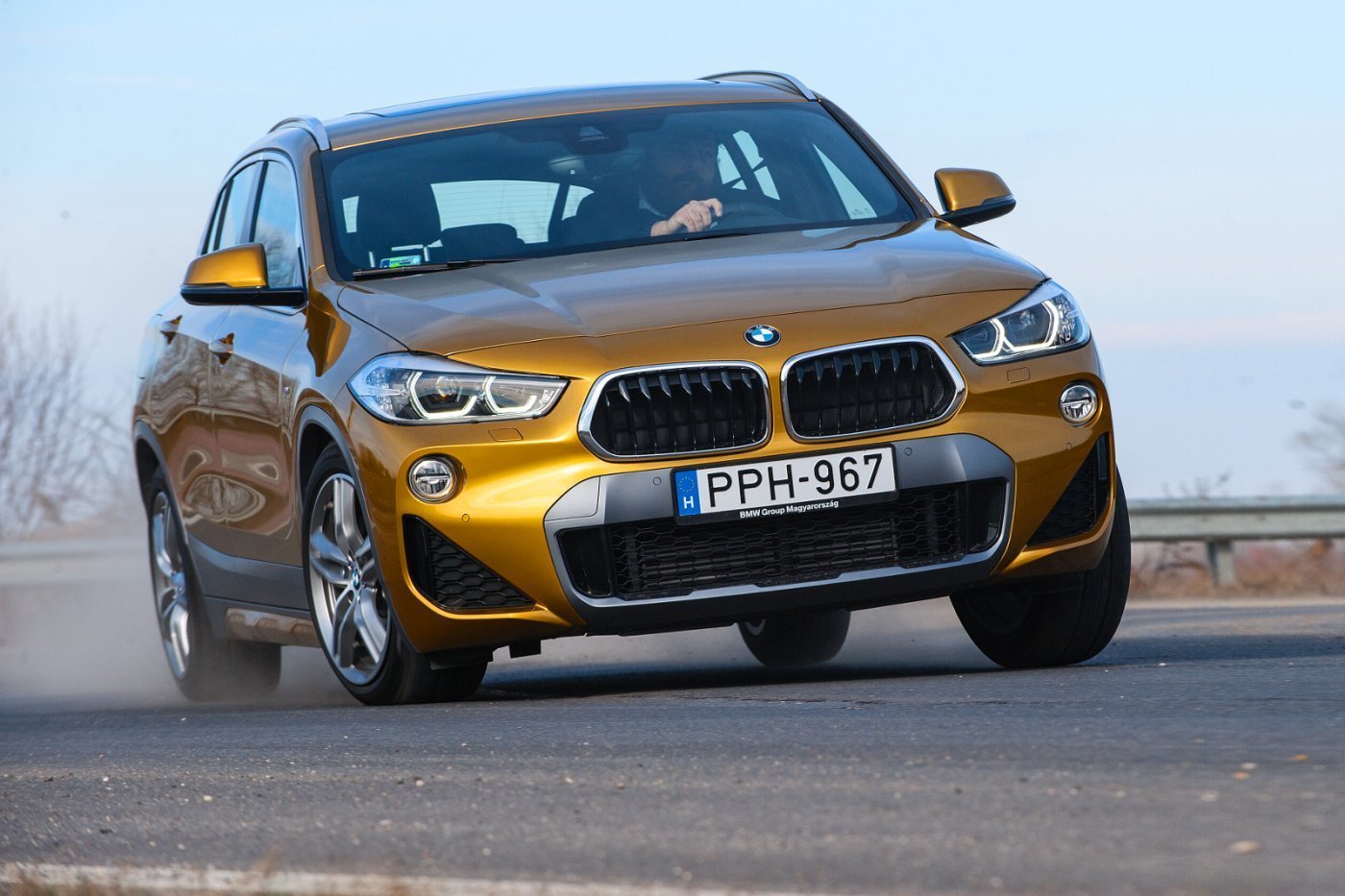 Mivel a 3-as BMW alapmotorja is háromhengeres, nem meglepő, hogy itt is az 1,5-ös turbós gépezet hajtja a bázismodellt (140 LE), azonban nem vitás, hogy a 192 lovas, 2,0 literes benzines, vagy a szintén 2,0 literes dízelek (190 és 231 LE) jobban hangsúlyozzák a prémiumjelleget. A 25d jelű, biturbó gázolajos 231 lóerős produktumával az X2-es csúcsmotorja, menetteljesítményei pedig meggyőzőek. Érdemes kicsit belegondolni, hogy a 6,7 másodperces gyorsulással egy 10 évvel ezelőtti, V8-as 540i-vel is tartaná a lépést. Persze a nyers erő nem minden, akármennyire is becsomagolják a motort, egy pillanatra sem tudná letagadni felépítését, szóval a 25d inkább a nyomatéka, mintsem a szép hangja miatt emelkedik ki a négyhengeres dízelek mezőnyéből. A 231 lóerős változathoz alapáron jár az xDrive hajtás és a nyolcfokozatú automatikus váltó (a benzinesekhez 7-es DCT kérhető). A BMW hosszmotoros modelljeivel ellentétben a dízelekhez nem a német ZF, hanem a japán Aisin szállítja a sebességváltót. Hagyományos automata létére gyorsan kapcsolgat, és a motorfékkel sem bánik szűkmarkúan, pont ezt várjuk egy BMW-től. A direkt kormányzás és a feszes futómű (utóbbi az M-csomaghoz köthető) révén még a szerpentinen való kanyargásban sem vall szégyent az X2-es, szerencsére sikerült belesűríteni mindent, amitől a szegmensen belül sportosnak és közvetlennek nevezhető egy autó.