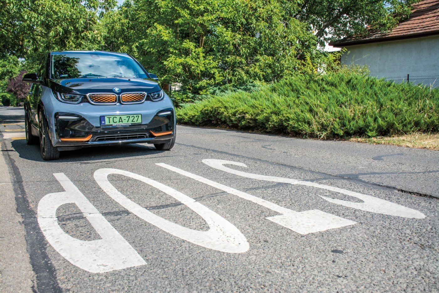 Nem hiába, a keskeny és magas autó intenzíven gyorsul, ereje azonban jól kontrollálható, természetesen épül fel. A padlóhoz támasztott pedállal nem csak a gyorsulás, a lassulás is befolyásolható, ugyanis az energia-visszatáplálás miatt gyakorlatilag nem kell a fékre lépnünk, ha csak nem történik valami váratlan körülöttünk. Ez elsőre meglepő, egy pár nap után azonban rutinszerűvé válik. A vártnál nagyobb erőszükségletű kormányzása, kiváló tapadást biztosító futóműve és eltalált vezetési pozíciója egyértelművé teszi, hogy BMW-ben ülünk, pedig utóbbi a belsőhöz hasonlóan egyedi, legalábbis sokáig egyedinek számított. Ha eltekintünk a kijelzők méretétől, ez a belső még mindig különlegesnek számít. Tengelytávja a karosszéria nagy részét kiteszi, ezen kívül nagy a belmagasság is, ami tovább növeli a belső tágasságát. Bár magasan ülünk, és a szélvédő elérhetetlen távolságban van, körénk épül fel az utastér. A vékony háttámlájú, futurisztikus ülések kemény tömésűek, de egész kényelmes bennük az utazás, és jól tartják a testet. A mértéktartóan vastag kormány ideális szögben áll, könyökölni az ajtón és a kartámaszon is lehet, a kormányoszlopra erősített irányváltót ugyan az első tesztautó óta nem sikerült megszokni, el kell ismerni, hogy logikus helyre került, csak sem az indító, sem a parkoló gombot nem ott keresi először a vezető. A jókora üvegfelületek üdítően hatnak, igaz, a légkondicionálónak nehezebb dolga van miattuk, stílusos megoldás a szekrényajtó, ráadásként elöl-hátul keret nélküliek az ablakok. Az i3-asban hátul csak 2 utas ülhet, középen pohártartót alakítottak ki, de a helykínálat felnőtteknek is elegendő, egyedül a csomagtartó mérete erősíti meg, hogy városi autóról van szó.