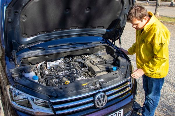 A nyomatékos dízel hangja az utastérben is hallható, mégsem zavaró. Nem egy erőgép, terhelve a teljesítménye csak nyugodt tempójú, cserében takarékos utazáshoz elég. 6,5 literes átlagfogyasztással különösebb odafigyelés nélkül lehet vele járni. Csak az egyes rövid, különben hosszú az ötfokozatú váltó áttételezése, a kapcsolásra figyelmeztető jelzés 1500-as fordulat közelében tartja a főtengelyt, 2000-től már érdemi gyorsításra is képes. A fékeket a nagyobb terheléshez méretezték, Volkswagenhez méltón precíz és biztonságos a kezelhetősége, ezt a család minden tagja értékeli majd.