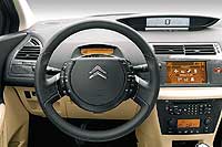 A pályafutását 1997-ben kezdő és azóta másfél millió példányban értékesített Xsara (a Picasso egyterű nincs benne) utódjánál hosszú idő után végre a formához igazodik a tartalom is. A Párizsi Autószalonon leleplezett C4-es műszaki újítások sorát vonultatja fel. Itt van mindjárt a kormánykerék, melynek középrésze rögzített, tehát kanyarodáskor kizárólag a karima és a két küllő forog – elsőre kissé furcsának tűnik a dolog, de higgyék el, a gyakorlatban igazából megszokást sem igényel. Elméletileg több előnye is van: például a fix pajzsra telepített kapcsolók minden esetben azonos helyen és helyzetben találhatók, tehát a korábbinál több funkciót lehet oda telepíteni. Azokat a pilóta anélkül veheti igénybe, hogy elengedné a kormányt – persze, kanyarodás közben a legritkább esetben szoktunk “kapcsolgatni”. Esetünkben a középrész bal felső szélén a sebességrögzítő és a sebességtartó automatika, bal alsó részén az opciós berendezések, mint a beszédvezérlés vagy a beépített rádiótelefon, jobb felül az audiorendszer, jobb alul pedig a multifunkciós képernyő kezelőszervei kaptak helyet, míg a duda az alattuk húzódó íven található. Mivel a kormányközéppel együtt a légzsák is a helyén marad, a tervezők optimalizálhatták annak formáját, így az hatékonyabban védi a vezető mellkasát.
