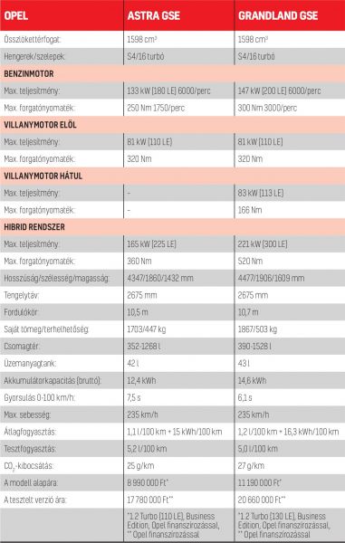 Sovány vigasz, hogy a plug-in hibridek mezőnyében mind az Astra GSe és a Grandland GSe is versenyképes áron szerepel, hiszen abszolút értelemben drágák, a típus alapárának a kétszeresébe kerülnek, és akkor még itt van az otthoni töltés kiépítésének a költsége is – amelyhez az Opel márkakereskedések is nyújtanak segítséget. Utóbbi azoknak fontos, akik tényleg kevés benzint használva szeretnek közlekedni, anélkül legfeljebb annak örülhetnek, hogy a sokkal nagyobb (rendszer)teljesítményért nem kell a benzinkúton felárat fizetni.