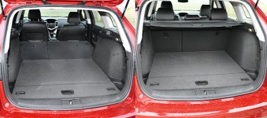 Praktikus megoldás, hogy a takaróroló a C-oszlop mentén kialakított sínben felfelé is elcsúsztatható, tokja előtt gyerekjátékok és egyéb apró holmik számára ideális pakolórekeszt, a padló alatt pedig rakodótálcát találunk. A poggyásztér szépen kárpitozott, befogadóképessége alaphelyzetben 500 liter, ami a 60:40 osztású háttámlák ledöntésével (nem kell bajlódni az ülőlap felhajtásával vagy a fejtámlák kiszerelésével) 1478 literig bővíthető.