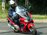 Mivel a magasra húzott váznyúlvány miatt nehézkes belépni a trepnire, célszerűbb láblendítéssel felszállni. Talán idegesítőnek tűnhet, de így legalább nem felejtjük el, hogy nem átlagos robogón ülünk, s nem tekerjük egyből csutkáig a gázt. A kanapénak is beillő ülésen fészkelődve nekem a túlzás szó jutott eszembe. Széltében és hosszában egyaránt óriási a párna, ami hatalmas előny, ugyanis hosszú távon sem fárad el az utas, illetve a pilóta ülepe, kormányállítás helyett pedig elég előre- vagy hátrahúzódni. Ha kiélveztük az élményszámba menő komfortot, jön a következő meglepetés: kevlár hátlapos műszeregység analóg