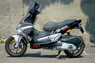 Teljesítménye alapján talán jobb is így, hiszen a 15 lóerős, négyszelepes blokk alapszintet meghaladó vezetési gyakorlatot igényel. Az agilis masina 7-8 másodperc alatt eléri a százas tempót, a középső fordulatszám-tartományban dinamikusan gyorsít, erős, határozott fékje van – tehát nem ajánlatos vele csak úgy reflexből, megszokásból hajtani. A Runner VX 125 RST jó futóműve és könnyű manőverezhetősége révén ideális városi, elővárosi robogó, amely a többsávos, gyakran 70-90-100 kilométeres tempót diktáló ki- és bevezető útszakaszokon is alkalmazkodik az adott forgalmi szituációhoz. A lassabb, 50-60 km/órás sebességre képes robogókkal ugye nincs “gond”, hiszen az autósok az első adandó alkalommal kikerülik, a lüktetőbb, párhuzamos haladás azonban nagyobb tempót igényel a veszélyes helyzetek elkerülése érdekében. A 125-ös Runnerrel egyszerű a pilóta dolga, hiszen gépe nem testes túrarobogó, így könnyebben tör magának utat – s most nem feltétlenül a kocsioszlopok közti bujkálásra és a köztes sávos helyezkedésre gondolunk. Országúton készségesen tartja a megengedett maximális sebességet, ami a motoros számára sem megterhelő, hiszen a fejidom plexije viszonylag jó hatékonysággal dobja el a szelet a fej és a váll elől. Az üléspozíció egyenes testtartást tesz lehetővé, de a nyereg formázása és tömése sportosan kemény, ahogy a Runner egésze is inkább az, mintsem komfortos. Sík terepen, egy személlyel, normál felsőtesttartással, 8800-as maximális fordulatszám mellett 108 km/órás csúcstempóra képes a 125-ös Gilera, ha azonban hátracsúszunk az ülésen, és sisakunkat a plexi mögé dugva “pucsítunk”, 9500-ig szökik fel a fordulat, a sebesség pedig 123 km/óra lesz. Így persze nem túlságosan kényelmes az utazás, mint ahogy a Runner is jobban érzi magát 80-90 km/óra környékén. A fordulatszám ekkor 7200-8000 között ingadozik, s nem mellékesen a száz kilométerre vetített fogyasztás is kedvezőbb, kb. 3,3-3,6 liter, szemben a maximális igénybevételnél mért 4,5 literes értékkel. A 8,7 literes benzintank űrtartalma ez esetben sovány 200 kilométeres hatótávolságot tesz lehetővé, kíméletesebb hajszával azonban legalább plusz 50 kilométerrel számolhatunk.