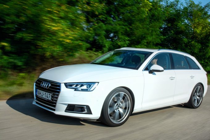 Lehet szeretni vagy nem szeretni az új Audik formáját, de az, hogy prémiumautó létére az A4 Avant nem igazán harsány megjelenésű, legalább annyira lehet előny, mint hátrány. Szó sincs arról, hogy ne lenne látványos az új kombi ebben az íbiszfehér színben, a szúrós tekintetű LED-es fényszórókkal, egyszerűen csak van benne egy egészséges visszafogottság. Ezt az autót inkább a részletek teszik naggyá, érdemes megnézni a karosszéria oldalán végigfutó, négy méter hosszú élt, amit négy lemezen keresztül kell vonalban tartani – egyszerűen az összes illesztésről süt a gondos és precíz munka.