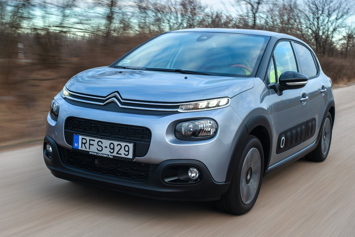 Karakteres külső, tágas belső és kényelem mindenek felett. Akár így is összefoglalhatnánk az új C3-assal szerzett tapasztalatainkat, hiszen a Citroën újra a saját útját járja. Kisautója azonnal felismerhető, egyedi jelenség. Bájos külsejéhez még a tesztautó nem éppen vidám, annál inkább elegáns színösszeállítása is passzol. A platinaszürke árnyalathoz fekete tetőt választottak, így még az AirBump védőbetét is belesimul a karosszériába.
