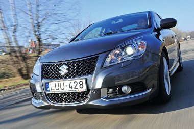 Lendületes, már-már agresszív a 9,3 milliós Suzuki frontrésze. A Kizashi szó jelentése: előjel, nyitány Benzinkútnál állok, éppen tankolom a Kizashit, amikor mellém gurul egy taxis. Megdicséri az autó formáját, majd az áráról érdeklődik, végül levonja a következtetést: „Huh, kilencmillióhárom, az nagyon sok érte, pedig baromi jól néz ki!” Teljesen igaza van, ma Magyarországon nem sokan fognak kiadni egy Suzukiért 9,3 milliót, bármennyire is csábos a hacukája.
