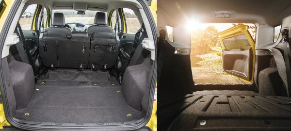 Annak ellenére, hogy elméletileg kiskategóriás SUV, tekintélyes méretekkel rendelkezik. A karosszéria alsó részének körbefutó, fényezetlen, fekete burkolata karcsúsít a megjelenésen, és az elengedhetetlen kályhaezüst betétekről sem kell lemondani elöl-hátul. A legkülönlegesebb részlet az oldalra nyíló csomagtérfedél, a kilincset a jobb oldali hátsó lámpa rejti! Azért kapunk ilyet a megszokott felfelé nyíló ajtó helyett, mert eredetileg külső pótkerékkel készült a típus, csak a 2015-ös frissítést követően tüntették el ezt a defektjavítószett megjelenésével; Brazíliában van összkerekes változat is, és az egyszerűség kedvéért csak egyféle hátsó padlólemezt készítettek, ahol nincs pótkerékmélyedés. Szerencsére nem kell lemondani a pótkerékről, 60 000 Ft felár ellenében meg lehet azt vásárolni. Arra kell vigyázni parkolásnál, hogy legyen hely kinyitni a fedelet, azt viszont jól megoldották, hogy gázteleszkóp segít mozgatni az ajtót, amely minden pozícióban megállítható. Krómdíszes a hűtőrács, ezenkívül már nincs csillogás a karosszérián. A könnyűfém felnik jól néznek ki (100 000 Ft felár a Titanium szinten), a sötétszürke-esztergált felületű kerekeknél szerencsére nem túlozták el az átmérőt, a 205/50 R17-es abroncsokkal még a rugózási komfort is jó.