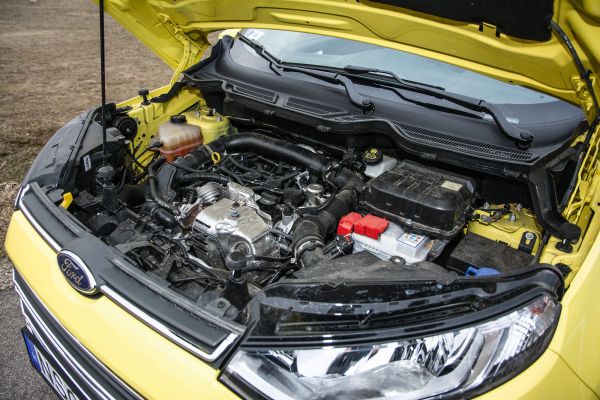 Mivel a magas tömegközéppont miatt a márkától megszokott jó vezethetőség megvalósítása nehéz lett volna, a felfüggesztést igyekeztek kényelmesre hangolni. A kormány könnyű, de azért érezni, merre állnak az első kerekek, egészen jól fordul az EcoSport, ám közben azért a karosszéria erős dőlésével számolhatunk. Nem kell megijedni az 1,0 literes lökettérfogatú turbómotortól, a 125 lóerős teljesítményéhez tartozó 170 Nm nyomaték széles fordulatszám-tartományban a vezető rendelkezésére áll, így a viszonylag hosszú áttételezésű, 5 fokozatú kézi kapcsolású váltóval is jól mozog. Nem túl virgonc, hiszen mégiscsak nagy a tömeg és a homlokfelület, de nem is kell állandóan kapcsolgatni és pörgetni a haladáshoz. Noha a típus- és a motornévben is ott szerepel a gazdaságosságra utaló Eco szó, a 8,0 l/100 km-es tesztfogyasztás nem erre utal.