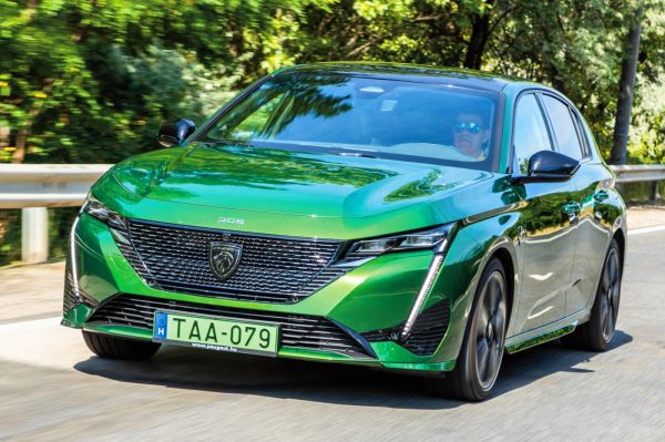 Jól áll az Opelnek a határozott vonalvezetés, a márka retrós elemeiből összegyúrt megjelenésben még a legendás Lancia Delta Integrale raliautó vonalait is fel lehet fedezni – házon, azaz Stellantison belüli inspiráció –, a lámpák kapcsán pedig több helyről is a volkswagenes jelző hangzott el; kipipálhatják a németes jelleget. A tesztautó fekete színe (190 000 Ft) elrejti a karakteres orrpanelt, így beleolvad a forgalomba az Astra. Nem úgy a 308-as, amely feltűnőbb nem is lehetne, ahhoz azonban már a franciák szakértelmére volt szükség, hogy tolakodó helyett ízléses legyen az összkép. Ez az egyik legfantáziadúsabb, legvonzóbb formaterv, amely az elmúlt időszakban piacra került, tele számtalan kidolgozott részlettel, mindez sportosan elegáns formába öntve. Messziről feltűnik, hogy egy vérbeli Peugeot-t látunk, az eltalált Olivine zöld fényezés ráadásul felár nélkül választható!