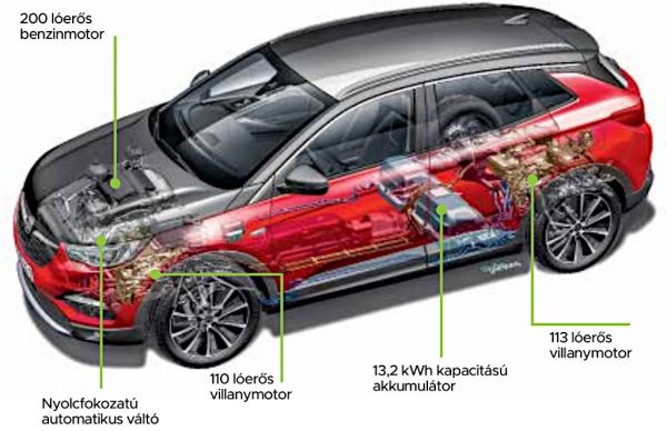 Az európai gyártók mezőnyében az elsők között volt az Opel a hálózatról tölthető hibrid hajtású modellek piacán az Amperával. A típussal kapcsolatban a legnagyobb nehézséget az jelentette, hogy igazából egy sportkupé volt, lapos karosszériával, a T alakú és az ülések közé benyúló akkumulátor miatt szűk utastérrel; ennek ellenére egészen jó darabszámokat értek el vele. Most, két autógenerációnyi idővel és egy tulajdonosváltással később egy sokkal jobb kiindulási helyzetben lévő járművel próbálkoznak. A Grandland X szabadidő-autó az európai piac egyik legnépszerűbb szegmensébe tartozik, és ezúttal sikerült úgy beépíteni a technikát is, hogy az nem követel kompromisszumokat az utasoktól. A csomagtér mérete kicsit csökken azáltal, hogy megszűnik a padló alatti rekesz, ettől eltekintve nincs változás, és pontosan ez az egyik gyenge pontja is a konstrukciónak.