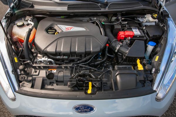 Bár túltöltéssel a 182 lóerős kivitel is képes 200 lóerő leadására, a megpiszkált 1,6-os, turbós benzines már stabilan tudja a megnövelt teljesítményt 5700 helyett 6000-es fordulaton, túltöltéssel pedig 215 lóerőre képes. Nyomatékleadása is megváltozott, a korábbi 240 Nm helyett 290-et tud, az 1600-5000 közötti tartomány helyett 2500-4000 között. A végáttételt is rövidebbre vették, 0-ról 0,2 másodperccel hamarabb éri a 100 km/órát. Ennyivel még nem végeztek, áttervezték a 15 milliméterrel leültetett ST-futóművet, a stabilizátorrudak és a lengéscsillapítók átméretezésével javítottak az útfekvésén, az áttétel lerövidítésével és a kormánycsukló átalakításával pedig közvetlenebb lett az irányíthatóság és javult a visszajelzés középállásnál. A változtatások talán nem is lennének szembetűnőek, ha nem hangolták volna össze az egészet, és szokásuk szerint nem hozták volna ki a legtöbbet a konstrukcióból éppen a modellciklus végére. Mert a Fiestának ebben a formájában már nem sok van hátra a piacon. Kora érezhető az utastérben, ahol az extravagáns dizájn tartja a frontot és tereli el a figyelmet az apró központi kijelzőről, vagy a sokgombos kezelőfelületről. Utóbbi nem feltétlenül hátrány a frissebb Fordok lassú érintőképernyőjével szemben, a menü felépítése, vagy a műszeregység kijelzője azonban előnyére változott az utóbbi időben.