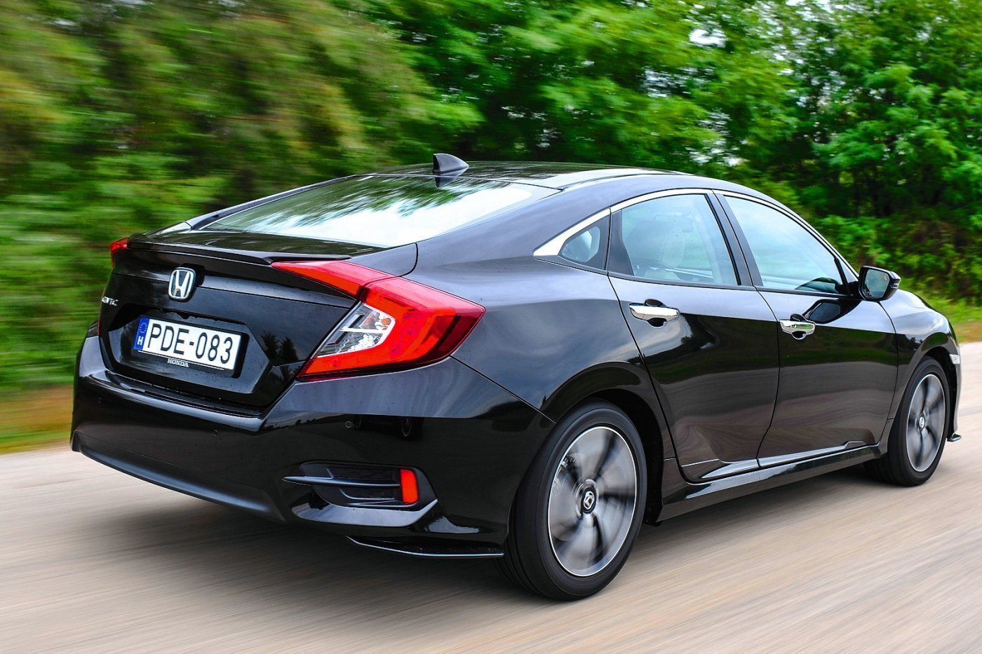 A Honda saját magát hozza azzal nehéz helyzetbe, hogy egyetlen motorral rendelhető a Civic szedán. Ha az ötajtóshoz elérhető 1,0 literes is választható volna, nyilván jobb lenne a helyzet, de kár lenne tagadni, hogy egy 182 lovas, benzines turbómotorral nehéz labdába rúgni a piacon. Mondom ezt annak ellenére, hogy az 1,5-ös egy igazi precíziós szerkezet, amely pontosan azt hozza, amit egy japán benzinestől elvárunk. Elképesztően halk, alapjáraton csak a fordulatszámmérő árulkodik arról, hogy jár a motor. Jól veszi a gázt, szívesen pörög, és teljesítményéhez mérten a fogyasztása is baráti (7,3 literes tesztátlag). A CVT-váltó azonban sokat elvesz a kraftból, a kézi váltós ötajtós ugyanezzel a motorral érzésre egy másik világ. Mivel a Honda fantasztikus manuális váltót kínál a jelenlegi Civichez, szerintem nagyon kényelempártinak kell lenni ahhoz, hogy a vevő a fokozatmentes automata mellett tegye le a garast. Városban tényleg jó, mert nincsenek hagyományos értelemben vett kapcsolások, de amint kicsit sietnénk, felbőgeti a motort. A futómű és a kormányzás úgy tökéletes, ahogy van, enyhén feszes felfüggesztés és direkt volán jellemzi a szedánt, ami mutatja, hogy a Honda legendás sportosságát nem lehetetlen átültetni egy kompakt lépcsőshátúba sem.