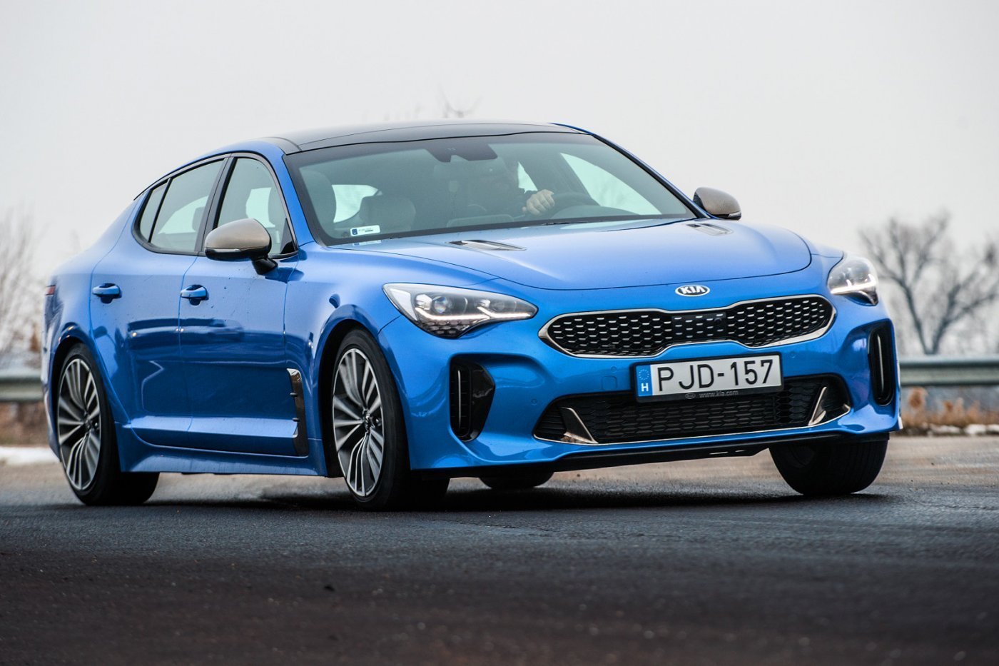 A Kia formatervezői tudják, mitől döglik a légy: függőleges a kocsi orra. A sarkokba tolták ki a GT Line szinten teljesen LED-es fényszórókat, hatalmasak a légbeömlők, az első sárvédőkön és a hátsó lökhárítón is ténylegesen működő, a kerékjáratokból levegőt kivezető szellőzőnyílások vannak. Két részlettel kell megbarátkozni, a motorháztetőbe helyezett fekete színű ál-légbeömlőkkel és a hátsó lámpáktól előrenyúló fényvisszaverőkkel. Nagyon eltalálták az arányokat, hosszú az orr, ível a tető, a 18 colos kerekek is helyénvalónak tűnnek. Amíg kívülről nézve egyedi a megjelenés (a hátsó rész kicsit a bumeránglámpás Maserati kupéra hasonlít), a belső térben már felfedezni a német behatást.