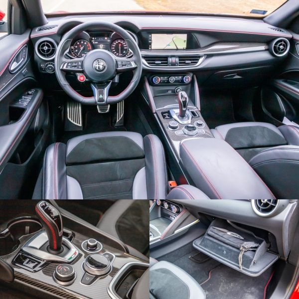 Az Alfa Romeónál egyértelműen leosztották a szerepeket: a személyautó sportszedán, a szabadidő-autó pedig amolyan mindenes. A változatlanul hagyott 2,9 literes, V6-os biturbó a Giulia Quadrifoglio esetében csak a hátsó kerekeket hajtja, így bőven hagy lehetőséget a sofőrnek kibontakozni, persze megfelelő körülmények (például egy repülőtér kifutópályája, vagy a hibákat megbocsátó bukóterű versenypálya) között. A Stelvio Quadrifoglio praktikusabb felépítése révén akár családi autós szerepkört is betölthet, és az összkerékhajtása okán mostoha időjárási körülmények között is képes biztonságosan eljuttatni a céljához az utasokat. A limuzinnál azért árnyaltabb a kép.