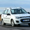 A Maserati egykor a versenypályák ördöge volt, kétszer nyertek Indy 500-at, 1957-ben pedig Juan-Manuel Fangióval Formula-1-es világbajnokságot, így néhány kör erejéig a Coupé Cambiocorsa is megérdemelt egy próbát a Hungaroringen. A Cambiocorsa elnevezés verseny-sebességváltót jelent, amely a Ferrari félautomata, F-1-es váltójának utcai leszármazottja. A kormány mögött elhelyezett fülekkel lehet sebességet váltani, a jobb oldalival fel, a bal oldalival lefelé, természetesen egyesével – azaz szekvenciálisan. Sportfokozatban a váltások gyorsak, a fülek azonban nem forognak együtt a kormánnyal, így kanyar közben meglehetősen körülményes fokozatot váltani. Hmm… A kormányzás viszont zseniális: tiszta, pontos, mintha egy speciális eszközzel rajzolnánk az ívet, tökéletes visszajelzéssel szolgál a kerekek helyzetéről. Persze, 390 lóerőt már gázzal is lehet kormányozni, ráadásul a motor elöl, váltó hátul elrendezésnek köszönhetően a Coupé szinte tökéletes tengelyenkénti súlyelosztással rendelkezik (52-48%). Kikapcsolt menetstabilizálóval kanyarból kigyorsítva bármikor enyhe túlkormányozottságba vihető, de remekül érezni a határt, amikor a fizika törvényei már ellenünk fordulnának. A féket viszonylag keményen kell taposni, de az ABS-szel asszisztált lassulás méltó egy sportautóhoz. Az 1,6 tonnás Coupé vezetése tulajdonképpen a pályán sem ördöngösség, mert egy utcai autóhoz képest elenyésző az oldaldőlése és jóval feszesebb a futóműve, a pályaautózás hajszolásának legfeljebb a csekély oldaltartású ülőpárna szab határt. Aki amúgy “kagylóülésre” vágyik, az benevezhet a Trofeo Maseratiba, melyben a Coupé versenyváltozatával száguldozhat Európa versenypályáin a tehetősebb Maserati-rajongók ellen