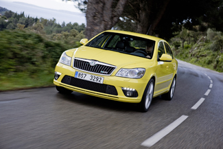 A korábbi gyakorlatnak megfelelően a csúcs-Octavia nem egy harsány, kivagyi gépcsoda (bár rikító sárga, vagy piros színben elég feltűnő), csak mérsékelten különbözik az alapmodelltől. A „ráncfelvarrott” szemek mögül felár ellenében kanyarkövető xenon fényszórók világítanak, a krómkeretes hűtőmaszkon ott feszít az RS jelzés, sportosabb az orrkötény szabása, és széria a hatásvadász LED-es nappali menetfény.