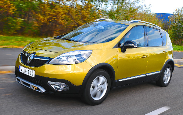 Az emelt hasmagasság miatt elöl 10, hátul 20 mm-rel szélesített nyomtávon „terpeszt” az Xmod, így semmivel sem dől jobban a karosszéria, mint a kiindulási alap esetében. Kissé szintetikus érzést keltő kormánya ellenére jó vezetni a Scénicet, hiszen a váltó és a futómű is jelest érdemel, egyedül a pedálok közötti méretes szintkülönbséget kell szokni. Persze a normál Scénichez hasonlóan az Xmod is a családi autó szerepkörében mutatja igazán erős oldalát: kompakt külméretei ellenére nagyon tágas a hátsó sor, és akkor még nem beszéltünk a méretükkel a kategória átlagát jóval meghaladó tárolórekeszekről, vagy az egyszerű bővíthetőségről.