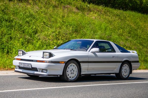 Az egymás mellett felsorakozott elődök árnyalják a képet, hiszen méretben mindkét klasszikus túlmutat az újdonságon. Nem csoda, hiszen eltérő koncepciót követnek, utóbbi egy roadster kupé, az A70-es egy elegáns – a mai kifejezéssel élve – prémium kupé négy teljes értékű üléssel, az A80-as pedig egy hasonlóan nyúlánk, 2+2 üléses sportkupé, a kategóriák méretének változása miatt tengelytávjuk mégis hasonló. Az 1988-as évjáratú, fehér Supra amerikai kivitel a szériában elérhető legnagyobb, 3,0 literes, soros hathengeres, 235 lóerős turbós benzinmotorral. Egy osztrák eladó hirdette, aki Svájcban vásárolt egy házat, melynek a garázsában állt a jó állapotú autó. Számára értéktelen volt, ezért kedvező áron túladott rajta. Attila felújíttatta a turbófeltöltőt és a futóművet, a bőr kopása miatt az első üléseket újrakárpitoztatta, ezen kívül csak általános karbantartásra volt szüksége a 190 000 kilométert futott ritkaságnak. Hamarosan felkészítik a veteránminősítésre, de jelenleg is kiváló formában van az itthon kevésbé ismert Toyota. A szögletes formavilágú, bukólámpás karosszéria mai szemmel régimódinak tűnik, de amikor 1986-ban piacra dobták, kifejezetten modernnek számított. Nagy üvegfelületei, keret nélküli ablakai és letisztult vonalai klasszikus eleganciát sugároznak. Az amerikai piachoz passzoló barna bőrbelsővel az európai riválisokat is célba vehette.