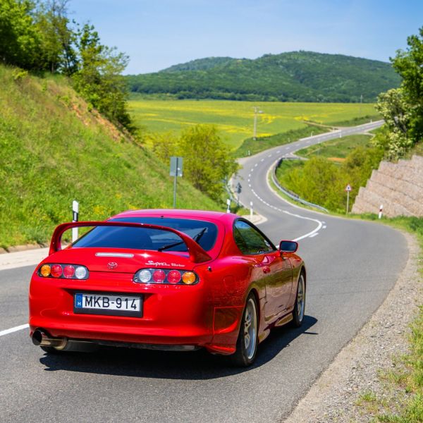 Ezt nem lehet elmondani az 1994-ben a japán belpiacra gyártott, piros utódjáról. 3,0 literes, soros hathengeres turbómotorja „csak” 280 lóerős, az USA-ban és Kanadában 324, Európában 330 lóerőt tudott, hatfokozatú kézi helyett négyfokozatú automatikus váltóval szerelték fel. Bár a szerkezet meggyőzően teszi a dolgát, Attila számára az a legfontosabb, hogy a kipufogórendszeren, a légszűrőn és a felniken kívül mindene eredeti, ami igazi ritkaságnak számít. A tuningőrültek egyik kedvence hat éve Angliából került Magyarországra, egy Suprákra szakosodott műhelyben javították, a 188 000 kilométert futott példány már túl van egy turbócserén és egy fényezésen, új gazdájának nem volt nagyobb tennivalója, legközelebb a néhány év múlva esedékes veteránminősítésre kell majd felkészítenie. A 90-es évek japán sportautóinak mintapéldányát olyan jól ismerjük a filmekből és a poszterekről, hogy hasonló élmény előtte állni, mint amikor eljutunk egy fontos nevezetességhez. Isao Tsuzuki formaterve egységes, masszív hatást kelt, a nagy légterelőn kívül szinte csak a karakteres lámpák díszítik a lágy vonalvezetésű karosszériát, amely kissé emlékeztet a családi Toyoták visszafogottságára, széles és lapos arányaival mégis kifejezi a benne rejlő teljesítményt. Talán éppen ezért is tuningolták olyan sokan, persze a legendásan nagy teherbírású 2JZ motor is sok sebességmániást elcsábított.