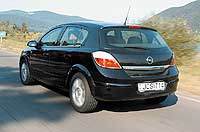 Az ötfokozatú sebességváltótól amúgy is távol áll a sportos kapcsolhatóság. Nem mintha a kar megvezetésével valami gond lenne, de akadós járása miatt legfeljebb erőszakosan tudjuk villámgyorsan átrántani egyik fokozatból a másikba. A kormányzás direkt (ütközéstől ütközésig 2,7 fordulat), a kormányműnek szinte nincs holtjátéka, ám az elektro-hidraulikus rásegítés miatt nem túl érzékletes. Négy tárcsafék gondoskodik a lassításról, a fékpedál nyomáspontja jól érzékelhető, s a blokkolásgátlós rendszer többszöri fékezés után is meggyőzően működik. A hátsó, csatolt lengőkaros felfüggesztés ideális a magyarországi “futóműgyilkos” utakra, hiszen strapabíróbb, mint a Ford Focus vagy az új VW Golf többlengőkaros konstrukciója. Ugyan kevésbé precízen vezeti meg a kerekeket, de kanyarban csak a nagyobb keresztbordákról, úthullámokról pattog el az Astra feneke. Az orrnehéz autót jóindulatú alulkormányozottság jellemzi, rezzenéstelenül viseli, ha hirtelen elvesszük a gázt, esetleg ráfékezünk, amikor erőltetett tempónál az eleje kúszni kezd. A futómű hangolása kissé feszes, de a bent ülők csupán a nagyobb úthibák megrázkódtatásaiból éreznek valamennyit.