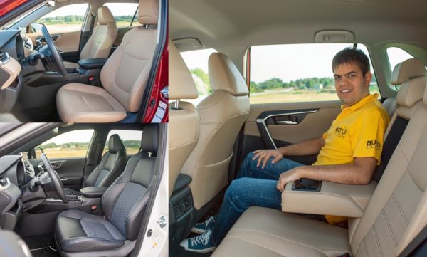 Fordul a kocka, ha átülünk a hibridbe, a vegyesüzemű változat csak megerősíti az érzést, hogy a benzines a japánok számára egy szükséges rutinmunka volt. Nyilvánvaló, hogy jelenleg ez a főcsapás a márkánál. A RAV4-es szinte szárnyalni kezd, amikor a két autóban megegyező váltókart a D állásba húzzuk és rálépünk a gázra. Az elektromos üzemben induló SUV élénken gyorsítani kezd, az e-CVT váltónak hívott bolygómű valóban fokozatmentesen adja át a villany-, illetve a benzinmotor nyomatékát a – jelen esetben – két első kerékre. A rendszer mindig maga dönt arról, hogy éppen melyik motornak milyen feladatot ad (a benzines hajthat és tölthet is), de a vezető vagy az utasok ebből nem vesznek észre semmit. Működéséről a műszeregységben, a fordulatszámmérő helyén egy fizikai mutató tájékoztat, de a központi kijelzőn folyamatábra is segít szemmel tartani az eseményeket. Innen tudjuk, hogy az akkumulátort nem hagyja az autó 50%-os töltöttség alá merülni, legfeljebb akkor, ha elektromos (EV) módra váltunk. Erre éppen azért van bármikor lehetőség, mert jól bánik az erőforrásokkal. A 218 lóerős RAV4-es feltűnően takarékosabb, a benzines 7,7, a hibrid 5,4 literes átlagfogyasztással teljesítette a tesztprogramunkat. Tény, hogy nagyobb gyorsításnál és sztrádatempónál a 2,5 literes motor is hajlamos a felbőgésre, mégis sokkal harmonikusabban viselkedik, mint az autópályázásra alapvetően alkalmasabb, hagyományos, 2,0 literes benzines. Egyetlen motorkonstrukció tud ennél is finomabban, dinamikusabban és hasonló fogyasztással nagy távokat megtenni, egy modern dízel, a nagyvárosokban élők autóhasználati szokásait figyelembe véve azonban jól kalkulált a márka, amikor a hibridre szavazott és saját legendát kezdett építeni. Hátrányként az árnyalatnyival feszesebb rugózást és az energia-visszatáplálás miatt kevésbé harapósnak tűnő fékeket említhetjük.