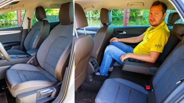 Az autóba beülve azonban feltűnik, hogy a belteret nem egyszerűen átalakították, hanem újragondolták! Az új kezelési koncepció jegyében van egy tökéletes felbontású, központi kijelzőnk, amely a klasszikus gombok számát drasztikusan csökkentette, a középkonzolon az egyetlen kapcsoló a vészvillogóé – a törvényi előírás miatt az elektromos kézifékkel együtt ezeknek fizikainak kell lenniük. Az ember elsőre csak vakarja a fejét, hogy miért kell mindenért a menübe lépkednie, s bár a klímavezérlésnek van egy külön csúszkája, kár lenne vitatni, hogy elvonja az ember figyelmét. Nagyon trendi és látványos, de a nyakamat tenném rá, hogy az idősebb korosztálynál kiveri a biztosítékot. A középkonzolon elkövetett „gombirtásnak” vannak érdekes következményei, például a hátsó ablakfűtést bal oldalon a fényszórókapcsoló paneljéről aktiválhatjuk. Ha ezeket megszokja az ember, feltűnik, hogy nagyautósan kényelmesek az ülések, jó a körkilátás és hátul is bőséges a hely. 190 centis magasságig a második sorban jól el lehet férni, és akkor még nem ejtettünk szót a pohártartós könyöklőről, a két USB-C csatlakozóról és az állítható szellőzésről. A vaskos középalagutat leszámítva minden adott ahhoz, hogy hátul is kényelmesen utazzunk.