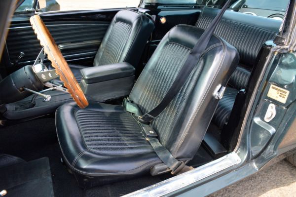 A szép, jófogású fakormány mögé ülve szintén hasonló, eltalált az üléspozíció, a műszerfal ugyanúgy domborodik, illetve a motorháztetőből is ugyanannyit látunk, csupán az üvegfelületek nagyobbak. Kiderül, hogy az új autó kicsinek tartott külső tükre áldás az apró, krómozott darabokhoz képest. Részletei kidolgozottak, műszerei mívesek gombjai, kapcsolói, belső kilincse, vagy éppen a hátsó ülés világítása csak úgy vonzzák a tekintetet. A hárompontos biztonsági öv csatját a tetőn találjuk, bekötése és visszahelyezése mai szemmel is bonyolult feladat, nem nehéz elképzelni, hogy akkor, amikor az amerikai autósok zsigerileg tiltakoztak a beszíjazás ellen, hányan küzdöttek meg érte, hogy használhassák.