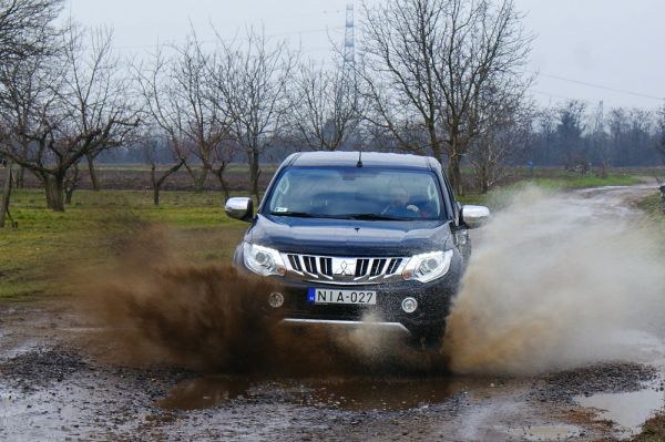 A szervokormány erőszükséglete éppen megfelelő, jól irányítható, nem jellemző rá alulkormányzottság, viszont a karosszéria még gázadásnál is megbillen a magas futómű miatt. Nem kisimítja, hanem kibírja az úthibákat, melyeken pattogva halad át. A 181 lóerős dízelmotor hangja állandóan hallatszik. Hátsókerékhajtással 2000-es fordulat felett kezd zavaróvá válni, összkerékhajtással hamarabb felerősödik a hangja, cserében már kis gázadásra is élénken reagál és bőséges erőtartalékkal rendelkezik. A kézi váltós L200-as kemény kuplunggal, férfias erőt kívánó karral mutatta meg haszonjármű jellegét, amit kiválthatunk a 410 000 Ft-os felárért kínált, ötfokozatú automatikus váltóval. A jól működő szerkezet finoman kapcsol, a kevés fokozat miatt CVT-sen dolgozik, de terepen is megállja a helyét. A 0,6 literes gyári fogyasztási különbséget nem lépte túl, sőt, nálunk 9,1 helyett 9,6 liter lett az átlag.