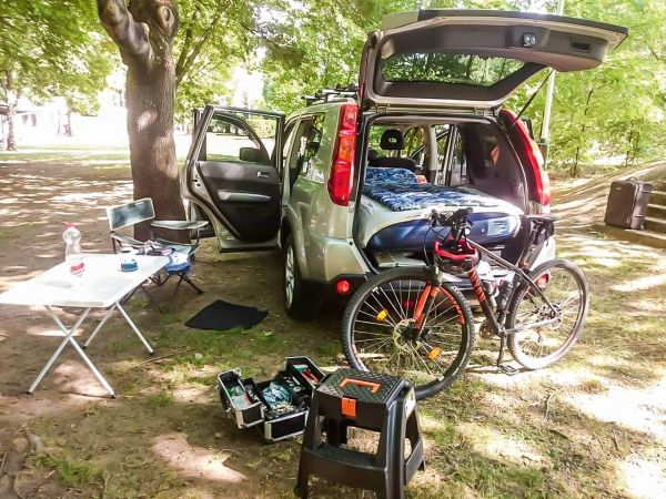 A hegyikerékpáros hobbit űző fotósunk, Stefler Balázs legnagyobb megelégedésére használja 2009-ben vásárolt autóját, amellyel nem csak biciklit szállít, hiszen annak belseje elég nagy az alváshoz is – ledöntött támlával 190×110 cm-es matrac fér el, és jut hely a kerékpárhoz szükséges szerszámoknak, valamint egy tábori zuhanynak is. Az összkerékhajtásra is szüksége van, hogy elérjen a céljához, ahonnan aztán tovább teker. Jobban tetszik neki a kézi váltós dízelmotor, jobban tudja időzíteni az indulást, mint a DCT-váltós új autónál, és az ő igényeihez már nem elég tágas a karosszéria hátulja. Az új X-Trail hátsó ülése annyi helyet kínál alaphelyzetben, mint a régi, de ilyenkor kisebb a csomagtér, ami akkor éri el a régi méretét, ha előrehúzzuk az üléspadot; a matracnak már nem marad hely.