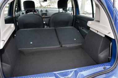 A raktér is tágas, a 320 literes érték ebben a szegmensben dicséretes, kár, hogy az ülőlap nem hajtható előre, bővítéskor pedig lépcső keletkezik. Sok ponton visszaköszön, hogy igyekeztek minimalizálni az előállítás költségeit. A fényezett raktérküszöböt nem óvja műanyag koptatóbetét, a kalaptartó hátsó felfogatása nem a szokásos, bepattintós/forgópántos elven működik. Annak végét úgy öntötték ki, hogy képes legyen a kinyitáshoz szükséges mozgás megtételére – nem túl tartós megoldás, az egyik oldalon már le is tört… A Sanderóhoz nem jár külön szervizkönyv, azt a kezelési leírás hátuljában találjuk, ezzel megspóroltak egy keményfedeles füzetet és némi nyomdaköltséget. Lazán elfér viszont a padló alatt a normál pótkerék (15 000 Ft), amit manapság sokan elhagynak.