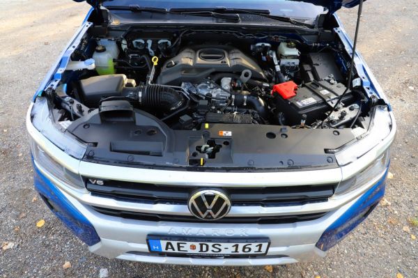Jogosan viselheti büszkén az Amarok a V6-os feliratokat, ugyanis Európában a VW és a Ford kínál csak 6 hengeres pick-upot, a japánok ebből a versenyből mintha szándékosan kimaradnának. A Ford fejlesztésű 3,0 literes karaktere nagyon hasonlít a korábbi generáció Audi V6-osára, minden gázadásnál érződik, hogy itt komoly motor dolgozik a gépháztető alatt. Hangja a fordulatszámtól függően bársonyos és erőteljes is tud lenni, erőtartaléka pedig fölényes menettulajdonságokkal ruházza fel a 2,4 tonnás modellt. Ha viszont valaki azt kérdezi, hogy a Ford féle 10 gangos váltó, van-e olyan jó, mint az elődben használt 8 fokozatú ZF, akkor a válaszom határozott nem. Hidegen nem kapcsolgat túlságosan finoman, illetve a 10 fokozat túlzásnak tűnik. Sík úton 45-nél már 6. fokozatban gurulunk…