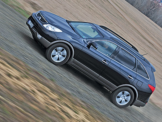 Az ix55-ösbe egy teljesen új fejlesztésű 3,0 literes dízelmotort és egy szintén friss konstrukciójú hatfokozatú automatikus váltót építettek. A 3.0 V6 CRDi 240 lóerős, maximális nyomatéka 450 Nm, melyet az 1750-3500-as percenkénti fordulatszám-tartományban ad le. Az 1600 bar nyomáson dolgozó, közös nyomócsöves befecskendezésű, elektronikusan változtatható geometriájú turbófeltöltővel ellátott motor bársonyosan jár, az utastérbe beszűrődő halk morajlása pedig egészen kellemes. Kirobbanó dinamikát azonban ne várjunk tőle, pláne elindulásnál lomha egy kissé, de azért ha sietni kell, tisztességesen nekilódul. Az ix55-ös 0-100-as gyorsulása 10,4 másodpercet vesz igénybe, ami átlagos érték a kategóriában, a német ellenfelek ennél nagyjából két másodperccel fürgébbek. A fékek hatásfokát és a pedál nyomáspontját meg kell szokni. Elsőre puhácskának tűnhet az elöl-hátul tárcsafékes rendszer, de miután ráéreztünk a működésére, már nem okoz gondot a biztonságos féktáv felmérése. Egy ilyen jellegű terepjárónál rendkívül fontos a motor és a váltó harmóniája, a Hyundai hatfokozatú Shiftronic automatikus váltója pedig ügyesen, megfelelő gyorsasággal kapcsolgat, nincsenek zavaró rántások vagy késlekedések. A fokozatokat a vezető is kiválaszthatja, de ezt egy-két előzést leszámítva nem nagyon vettem igénybe, az automata az esetek döntő többségében ugyanis kifogástalanul látja el feladatát. Hiába a korszerű dízelmotor és a jó automata, a nagy homlokfelületű, testes kasztni mozgatása bizony nincs ingyen. Nálunk 11,1 l/100 km-es átlagot produkált az ix55-ös, s csak lakott területen kívül, nyugodt 90-100-as tempó környékén mutatott barátságosabb (9-9,5 l/100 km) értékeket a fedélzeti számítógép. Városban vagy autópályán érdemes 13-14 literes fogyasztással kalkulálni, egy teli üzemanyagtankkal azért gond nélkül megtehető nagyjából 650 kilométer.