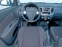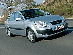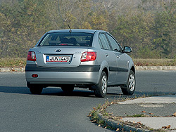 A Sportage-dzsel elkezdett imázsépítést a Sorentóval gond nélkül folytathatta a Kia, a Riónál azonban kénytelenek voltak teljesen új fejezetet nyitni. A régi és az új modellnek csak a neve közös, és ez mindenkinek nagyon jó hír. Nálunk elsőként a négyajtós, 1.5 CRDi motorral és ötfokozatú, kézi váltóval felszerelt EX modell járt teszten. Már első pillantásra látszik, hogy nagyon összekapta magát a Kia Németországban, Rüsselsheimben dolgozó tervezőcsapata. A korábbi aránytalanság klasszikus kisautós vonalaknak adta át a helyét, összességében leginkább a Hyundai Accent ugrik be, a négyajtós hátsó lámpái engem a Xsara buráira emlékeztetnek. Nagyon helyes a púposan ívelt tetővonal, a motorháztető dupla domborítása pedig kifejezetten lendületesre sikerült. Az ötajtós valamivel talán eredetibb formájú, a szedán puttonya azonban 120 literes előnyt biztosít, egyenes vonalakkal határolt csomagtere összesen 390 literes, szemben az ötajtós 270 literjével. A használhatóságot kicsit korlátozza, hogy a csomagtér fedelét kívülről csak kulccsal lehet kinyitni – egy nyitógomb jól jött volna. A szedán pontosan olyan hosszú (4240 mm), mint az előd volt, az ötajtós 25 centivel rövidebb, de ezúttal sokkal jobbak az arányok, a két tengely közé 2500 mm jutott, ami a fő konkurensnek tekintett ötajtós VW Polo, Skoda Fabia, Peugeot 206, Ford Fiesta és Opel Corsa mindegyikénél hosszabb. Tökéletesen érezhető a különbség, korábban a „beülök magam mögé” próbán elbukott a hátsó lábtér, most akár terpeszkedve is elfértem a 176 centimre állított sofőrülés mögött. Az EX modellen standard, 60/40 arányú osztott hátsó üléstámla középső könyöklőt, három fejtámlát és ISOFIX gyermekülés-rögzítő kampókat is kapott. A sofőr munkakörnyezete is nagyot fejlődött. Nőtt a kormány magasságának állíthatósága, bár tengelyirányban továbbra sem mozgatható. A korábbi, meglehetősen