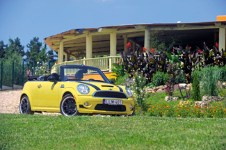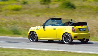 A Cooper Cabrio 15 másodperc alatt hámozza le vászontetejét, a zárás folyamata is pont ennyi időt vesz igénybe. A tetőmozgatási procedúra menet közben (max. 30 km/óráig) is végrehajtható. Kabrióként, szélterelő hálóval használva a Minit, egészen huzatmentes az utastér. Nem csak akkor érdemes leengedni a tetőt, ha sütkérezni szeretnénk, szűk parkolóhelyre való tolatáskor is ajánlott a fedél lenyitása. Csukott tetővel átlósan hátrafelé szinte semmit sem látunk, ilyenkor csak a tolatóradar figyelmeztető jelzéseire hagyatkozhatunk. A második sorban maximum gyerekek férnek el, zavaró a mélyre süllyesztett első ülések miatt az alacsony tér, mely a lábak rendelkezésére áll. Ezenkívül a merevítések miatt erősen kitüremkedő oldalelemek is rontják a kényelmet.