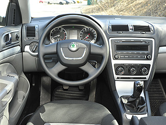 Odabent a kormánykerék idézi a csehek zászlóshajóját, bőrborítás persze csak a két gazdagabb felszereltségi szinten dukál hozzá. Nem is annyira ez, mint inkább az olcsó, kályhaezüstös dekorelemek vonnak le a belső értékéből. Pedig az anyagválasztás egyébként megfelelő, a műszerfalat habosított műanyag borítja, és a kárpitozás gazdag, ha nem is a legfinomabb anyagokból való. Tetszetősebb az audiorendszer és a légkondicionáló kezelőegysége, továbbá új a műszeregység is, bár nekem ebből sokáig csak a zöld helyébe lépő fehér megvilágítás tűnt fel. Összességében kellemesebb, de továbbra sem derűs az utastér hangulata. Persze az Octaviát nem is ezért, hanem praktikus részletei és nagyvonalú térkínálata miatt szeretjük. Temérdek pakolórekesz, szemüveg-, palack- és pohártartó, nagyméretű ajtózsebek, valamint kabátakasztók emelik a használati értékét. Négy felnőtt számára kényelmes férőhelyet nyújt az autó, csomagtere pedig nemhogy a Golf-osztályban, de még a középkategóriában is tágasnak számít.