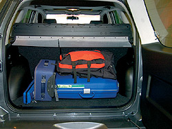 kategóriának. Az ülések is hozzák az átlagos színvonalat, legfeljebb azt kell megjegyeznünk, hogy a bőrkárpit nem terepjáróba való, hiszen ezen az ember jobban csúszkál. Ám ez a tétel is rávilágít arra, hogy az új Grand Vitara funkciója már korántsem a terepezés. Hátul is az elvárhatót nyújtja a Vitara, de semmi többet. A tér átlagos nagyságú, a hátsó ülés osztva dönthető, előrebuktatható, a kényelem érdekében a támla dőlésszöge a csomagtér rovására változtatható. Az ülés kezelése logikus és egyszerű, ezen a téren a Grand Vitara az alapkivitelű egyterűk képességeit mondhatja magáénak. A raktér alig 400 literes (de az előbb említett módon legalább 1,4 köbméteresre bővíthető), s a húszcentis szabad magasság és a „terepjárós designkövetelmények” miatt a rakodóperem magasan van. Ha az ember olyan dolgot akar kivenni a raktérből, amely egészen az üléstámlákig becsúszott, akkor garantáltan koszos lesz a ruhája a hátsó lökhárítótól. A csomagtér hátsó részében van egy kis fedeles rekesz, ám belülről ugyanaz a filcszőnyeg borítja, mint a raktér egészét, így vizes, nedves tárgyak tárolása nem ajánlott. A hátsó ajtó egyetlen pozitív tulajdonsága, hogy a külsején van a pótkerék (így nem a raktérből rabolja a teret). Ám sajnos, oldalra nyílik, ami szűk helyen nehézkessé (kerülgetni kell az autót) vagy egyenesen lehetetlenné teszi (nincs hely az ajtót kinyitni) a pakolást, s a Suzuki még azzal az egyébként jól bevált megoldással sem enyhít a gondon, hogy az ajtón lévő ablak külön nyitható lenne. A terhelhetőség viszont nagy, fél tonnánál is több.