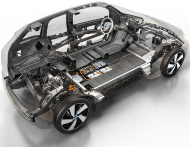 Mindezért persze az alacsony súly is felelős, az 1270 kg-os érték pedig nem csak a villamos autók között számít szerénynek, ezzel a tömeggel egy alap 1-es BMW-nél is egy mázsával kevesebbet nyom az i3-as a mérlegen. Az alumíniumplatformra épített szénszál-erősítésű műanyag utascella bravúros technikai megoldás egy sorozatgyártású autó esetében, hiszen ez leginkább a kis tételben gyártott szupersportkocsik privilégiuma. Állítólag a javíthatóság sem lesz probléma, mert 9 elemből ragasztják össze a vázat, így a sérült részt ki lehet vágni és gyorsan pótolni. Az akkumulátor természetesen a padlóban foglal helyet, meghibásodás esetén pedig a 96 cella bármelyike egymástól függetlenül cserélhető.