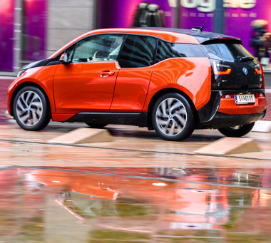 Úgy megy, mint egy izmos, 2,0 literes dízel – ez volt az első mondatom, miután padlóig nyomtam a BMW új villamos autójának gázpedálját (pardon, menetpedál), ugyanis a hátsó kerekeket hajtó, 170 lóerős elektromotor úgy megrántja a futurisztikus külsejű kapszulát, hogy arra szabályosan rácsodálkozik az ember. Mint valamilyen nagy nyomatékú autóban, az ülésbe passzíroz a gyorsulás (kevesebb, mint 5,0 másodperc alatt ugrik 80-ról 120-as sebességre), csak mindezt szinte teljesen nesztelenül teszi, csupán a gumik és a szél zaja jut be kismértékben az utastérbe. De említhetjük a közvetlen kormányzást (a két végállás között 2,5 a fordulat), a feszes futóművet, vagy az ideális, 50:50 arányú tengelyek közötti súlyeloszlást – ezt a modellt is meg akarták tölteni BMW-s génekkel, az eredmény pedig az, hogy a Tesla mellett jelenleg ez az egyetlen villamos autó, melynek vezethetőségére illik a sportos jelző.