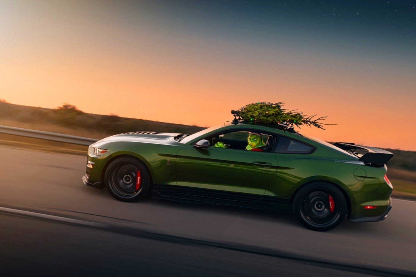 Tavaly egy Audi RS6 Avant-tal szállított karácsonyfát a Hennessey Performance, akkor 294 km/órás tempót értek el, idén a Venom 1000-es csomaggal szerelt Shelby Mustang GT500-ast választották szállítójárműnek (1014 LE/1152 Nm), amivel már 309 km/órás tempót sikerült elérni. A volán mögött Spencer Geswein profi autóversenyző ült, a helyszín pedig a Continental texasi Ulvade-ben található fejlesztőközpontjának pályája volt.