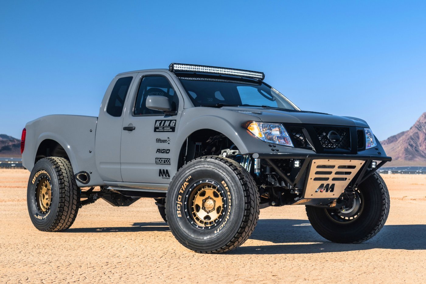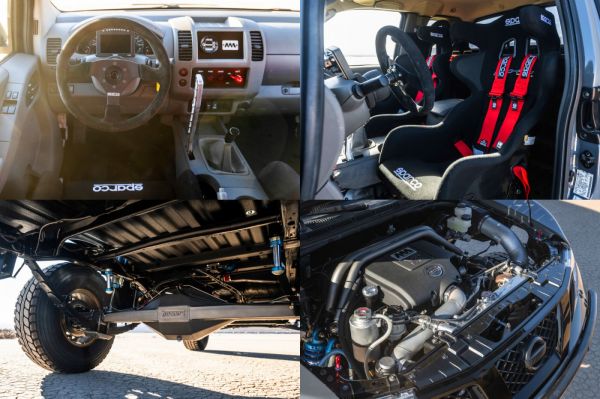 Kidobták a 4,0 literes V6-ost, amelynek a helyére a Titan pickupból származó 5,6 literes V8-as került – miután verseny-alkatrészekkel és egy Garrett GTX3584RS turbóval 600+ lóerőre és 950 Nm-re növelték a teljesítményét –, amihez hatfokozatú, kézi kapcsolású váltó csatlakozik, és csak a hátsó kerekek hajtottak. A BTF Fabrication műhelye készítette az extranagy rugóutakkal rendelkező első (csavarrugó) és hátsó (laprugó) felfüggesztést, a szükséges segédvázakat az MA Motorsportnál készítették.