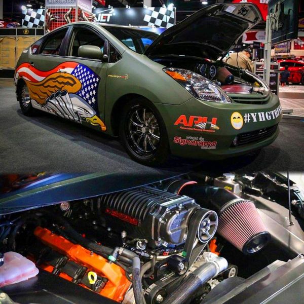 A kipufogórendszerek fejlesztésével és gyártásával foglalkozó American Racing Headers nevű tuningcég úgy gondolta, tudásának legjavát egy igazán egyedi rendszerrel demonstrálja a 2017-es SEMA kiállításon, úgyhogy mintegy egy év alatt megépítették a PriuSRT8 nevű alkotást a Farks Supercars nevű céggel közösen.