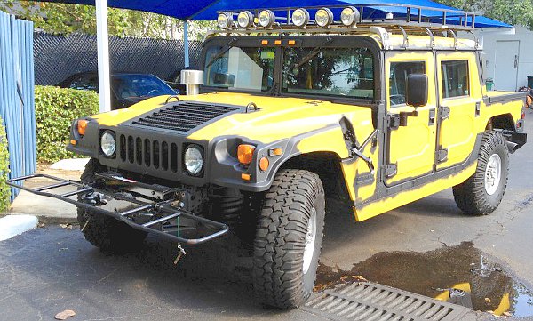 A hajlításoknál különösen nehéz úgy dolgozni, hogy ne látszódjon ki az eredeti szín, ezt oldotta meg egyszerűen a nem ismert fóliázó. A kérdéses Hummert egy kereskedés számította be egy másik autóba, és azért döntöttek a mattfekete szín eltávolítása mellett, mert az már eléggé viharvert állapotban volt.